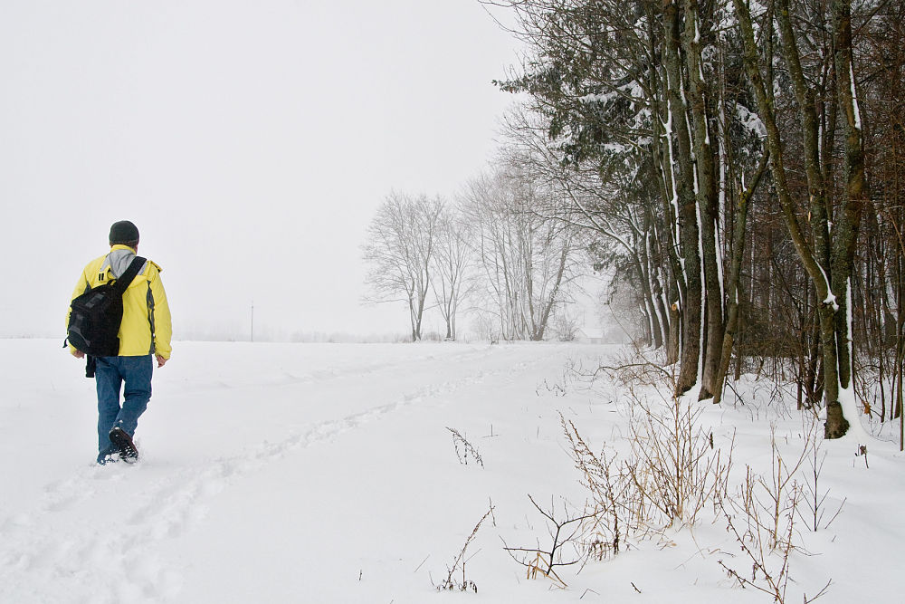 Wczoraj byłam na krótkim spacerze. Wokół na polach obok drogi biały głęboki śnieg. Zimowy widok i nagle zobaczyłem powyżej lecące cztery żurawie z północy na południe. Wracają, radośnie, bo żurawie przynoszą nam wiosnę i smutno, bo wracają, gdy zima jeszcze trwa. Poniżej zdjęcia zrobione tego dnia po bofitych opadach..